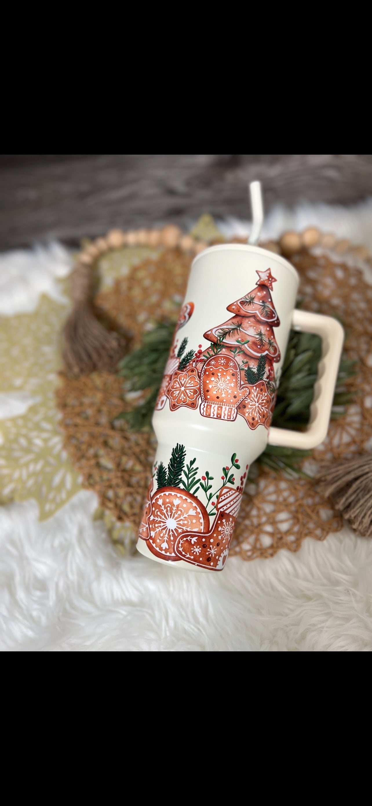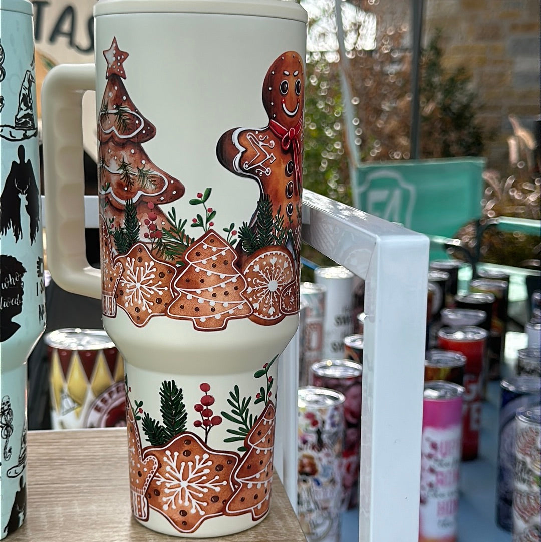 40oz matte gingerbread man stainless steel SM dupe tumbler