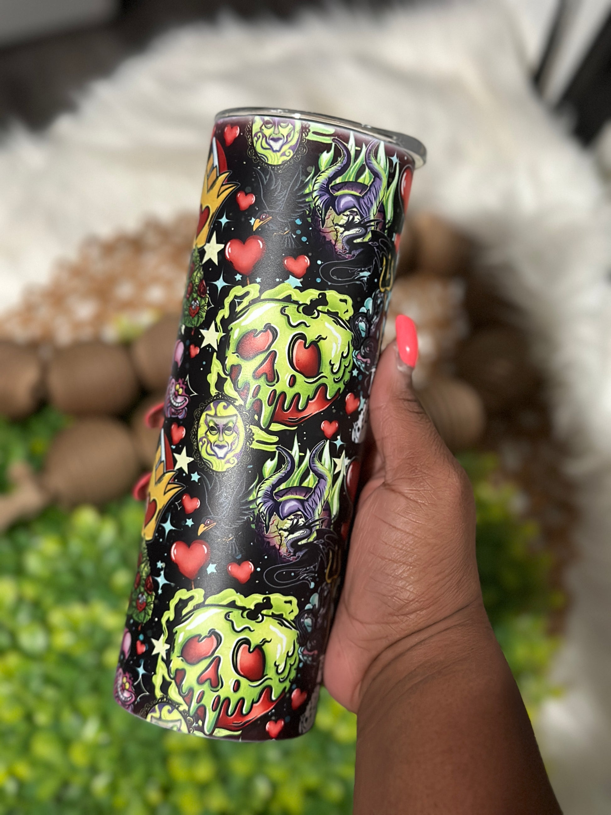 This handmade Tumbler started off as just a plain stainless-steel double walled tumbler! lightly sand down, clean and prime it white to essentially turn it into a blank canvas. With this blank canvas I decorate using multiple techniques! Each item is one of a kind and a true piece of art nobody else will have.